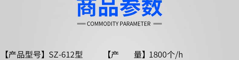 名称SZ-612型全自动91香蕉APP下载导航 电源220V/380V 功率1.55KW 产量1800个/h 尺寸1720×640×1460(包括输送带 重量248 规格20-130g/个 其他