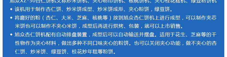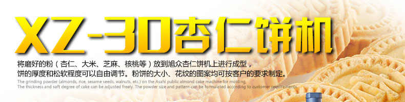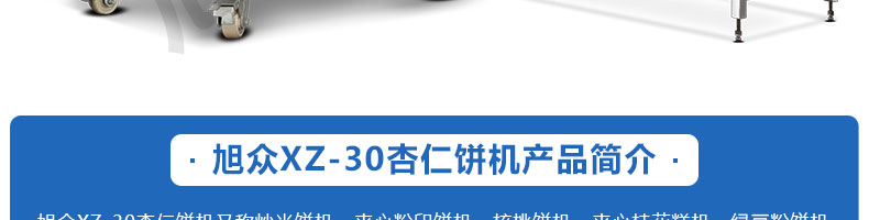 XZ-30杏仁饼机,该机用于制作杏仁饼、炒米饼成型、炒米饼成形、夹心粉饼,绿豆饼。