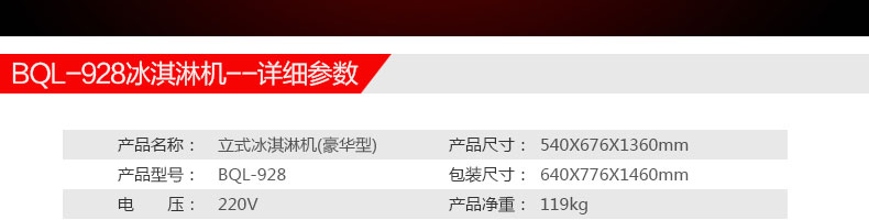 BQL-928立式冰淇淋机,1.选用国际牌压缩机,辅以91香蕉视频软件精湛工艺,大大缩短冰淇淋成型时间,高效节能;2.全新液晶智能触控面板,简单明了,多功能易操作;3.全新升级专业膨化泵,膨化率高,产量增加30%;4.一键清洗功能,省时方便;5.主要部件采用不锈钢材质,时尚美观,持久耐用;6.先进的机械搅拌系统,机器运行稳定可靠,低噪音,产品口感爽滑细嫩。