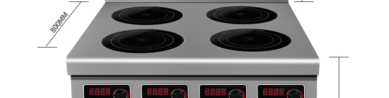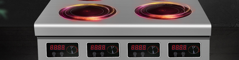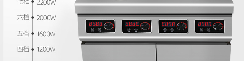 四头柜式电磁炉,10档调节,满足各种烹饪。3500W火力十足,轻松选择合适火力。同时工作互不干扰单独磁炉控制面板,设置不同大小档数,同时工作,互不干扰。