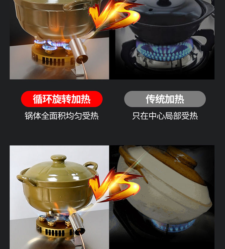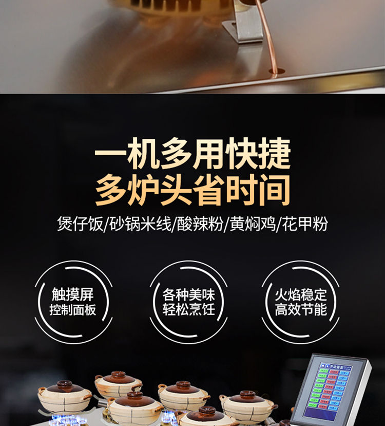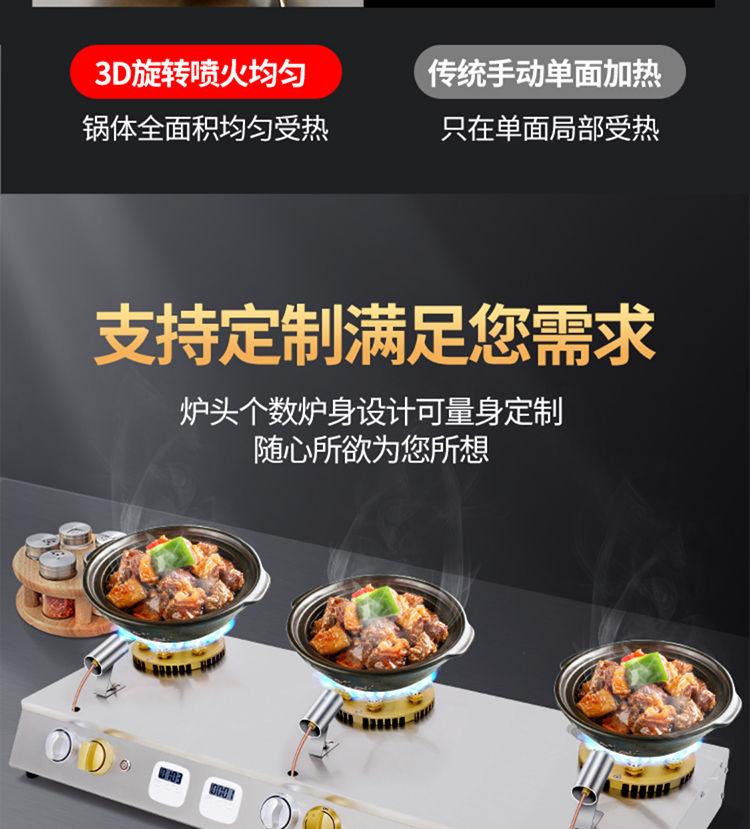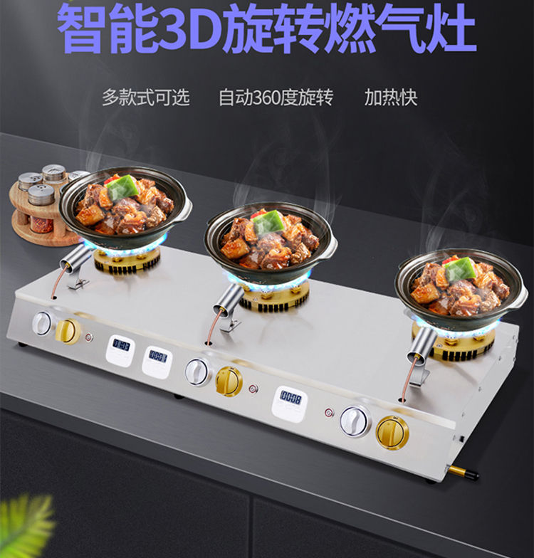 智能煲仔-炉商用四头六眼旋转韩式猛火灶-砂锅灶燃气灶,