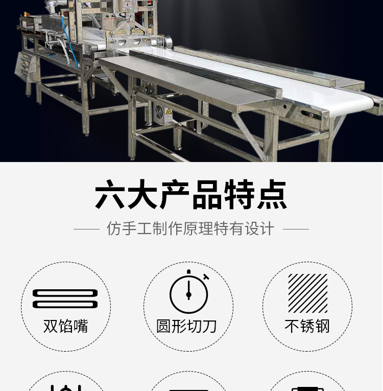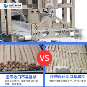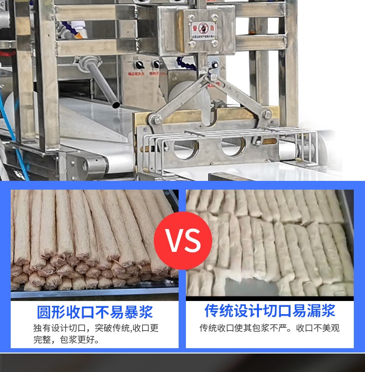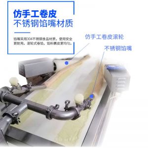 SZ-509腐皮卷机,六大产品特点仿手工制作原理特有设计:双馅嘴、园形切刀、不锈钢、可调控、大容量料斗、一机多用。馅嘴采用304不锈钢食品材质,使用安全更耐用。滚轮式卷馅,馅料裹皮更均匀。