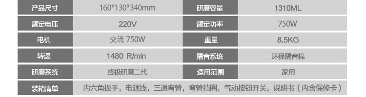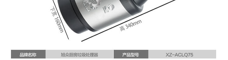 名称ACLQ75-厨房垃圾处理器 电源220V 功率0.75kw 产量 尺寸 重量8.5kg 规格 其他转速1480R/min,研磨仓容量1310ML