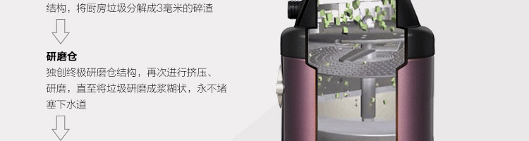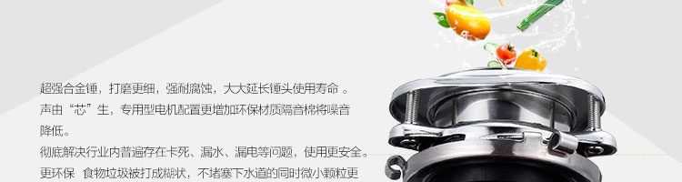 ACLQ37-厨房垃圾处理器,采用先进的研磨系统,采用特殊合金锤粉技术,能根据垃圾的强度,自动调节工作位置,处理垃圾的范围和细度优良。能够有效地将食物垃圾研磨成细小颗粒,直接从下水管道排出,从而实现及时方便快捷的厨房清洁,满足现代健康家居的要求。