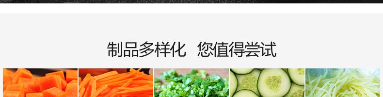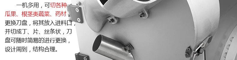 XZ-680A多功能切菜机,一机多用,可切叶菜及根茎类蔬菜,并可切片、丝、条、丁、段,碎等,切菜规格可根据不同需要调节尺寸,方便快捷。随机共配送三套刀具。