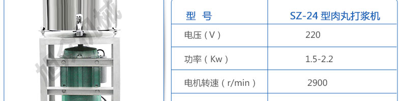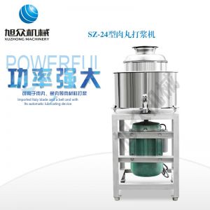 SZ-24型高速肉丸打浆机,高速肉丸打浆机选用不锈钢,生产过程中改善了肉质脂肪纤维,生产出的丸子外表光滑细腻、低脂、口感爽脆、弹性好、韧性好,是潮州肉丸的专用打浆机。