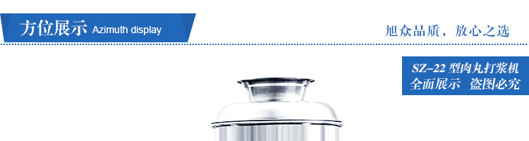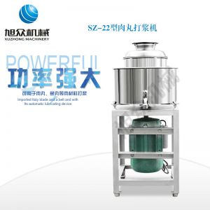SZ-22型肉丸打浆机,本机装肉用桶子采用不锈钢制造,达到卫生要求,肉桶外罩和桶底装有冷却装置,确保肉浆新鲜。比手工的打浆更精细,所产肉丸、鱼丸弹性好,色泽洁白。