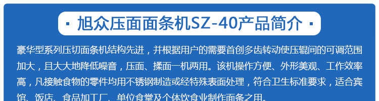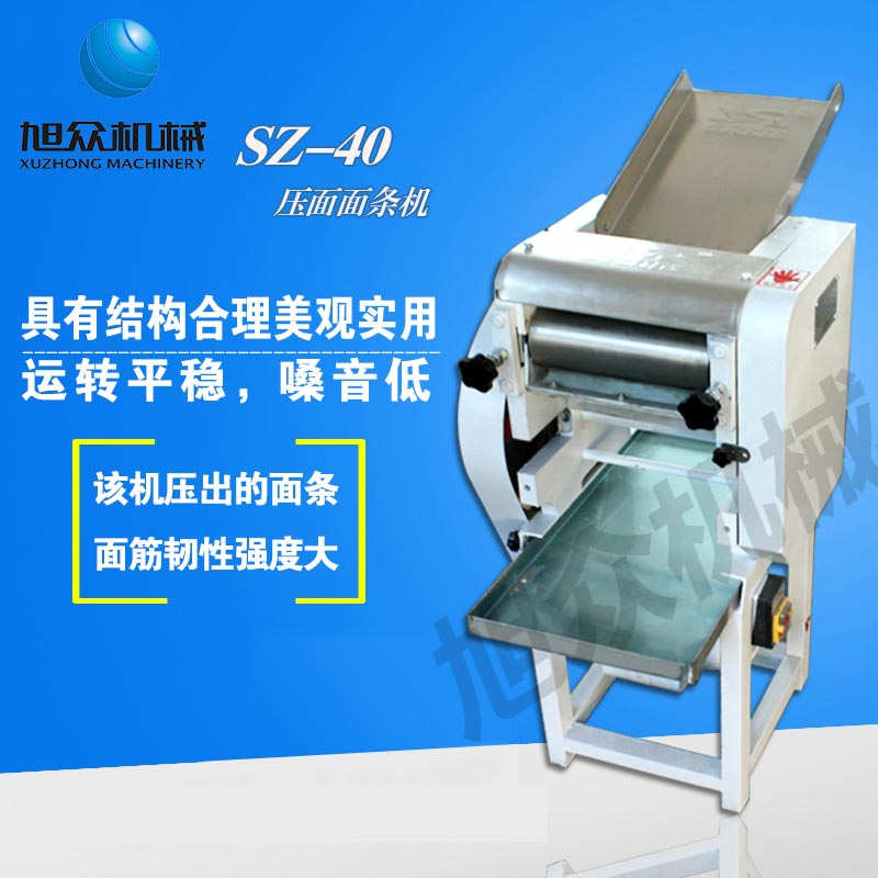 SZ40、SZ60压面面条机91香蕉视频APP下载,本机压面、揉面一机两用,用于制作面条、云吞皮、糕点、面点等食品,生产的产品韧性大、耐煮、不易断,适合于宾馆、饭店、食堂、面包厂及各类面点加工单位或个体商户使用。